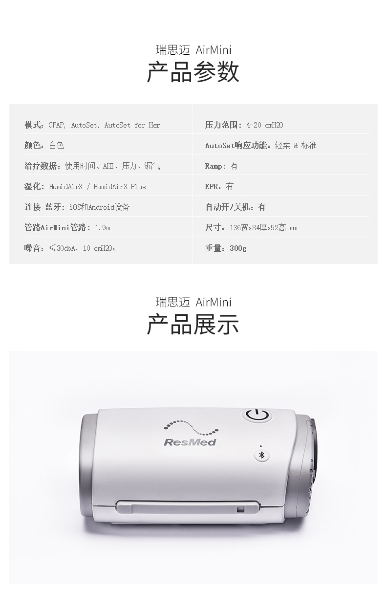 瑞思邁mini呼吸機輕便,出差神器不耽誤睡眠呼吸暫停低通氣使用
