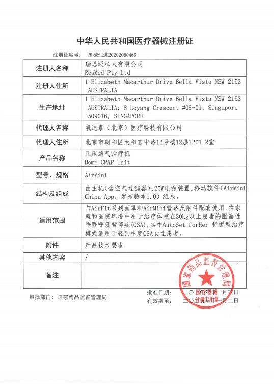 瑞思邁AirMini正壓通氣治療機(jī)